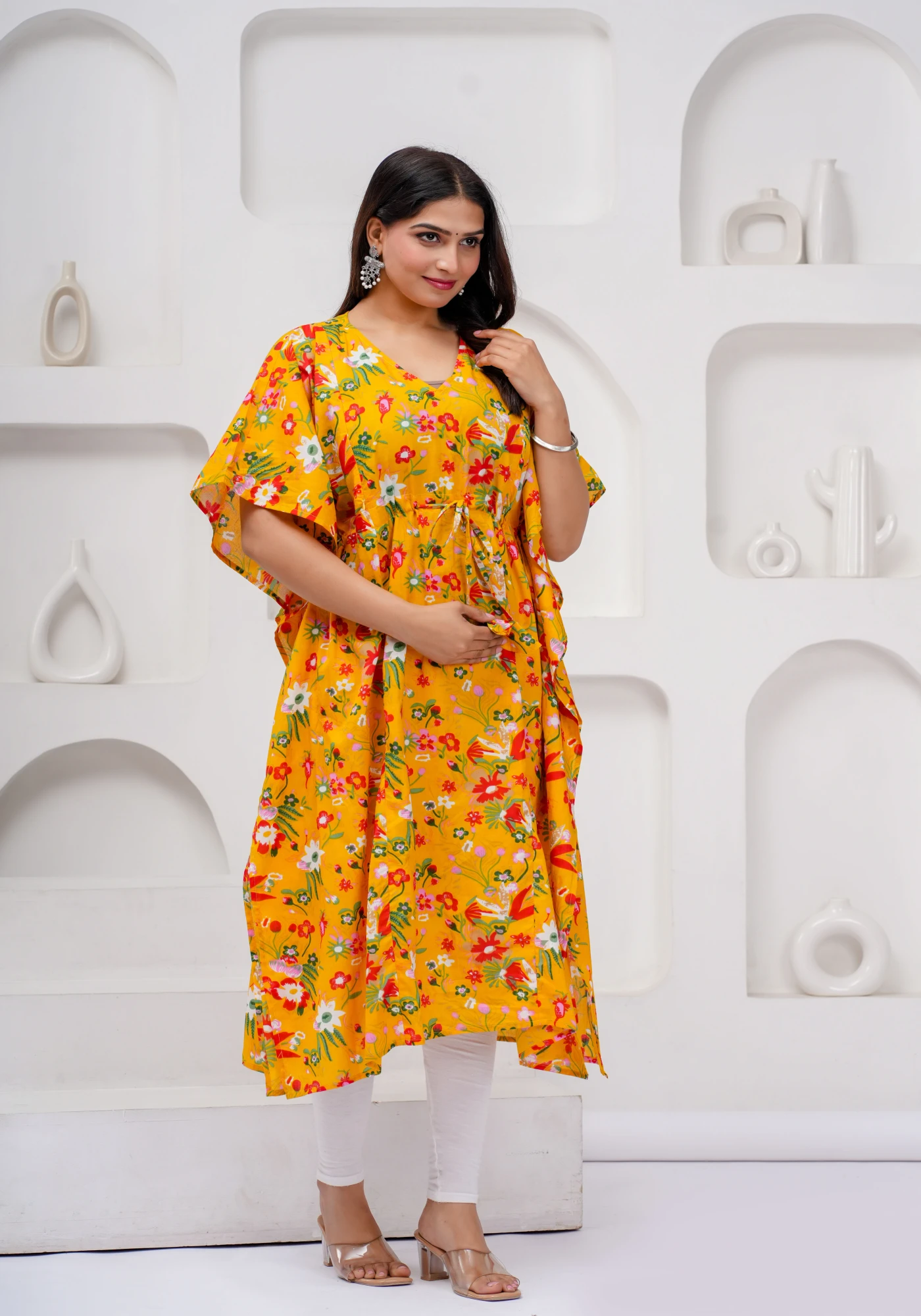 Blending functionality with effortless fashion, this cotton pregnancy kaftan is a must-have for mothers who prioritize comfort without compromising on style.