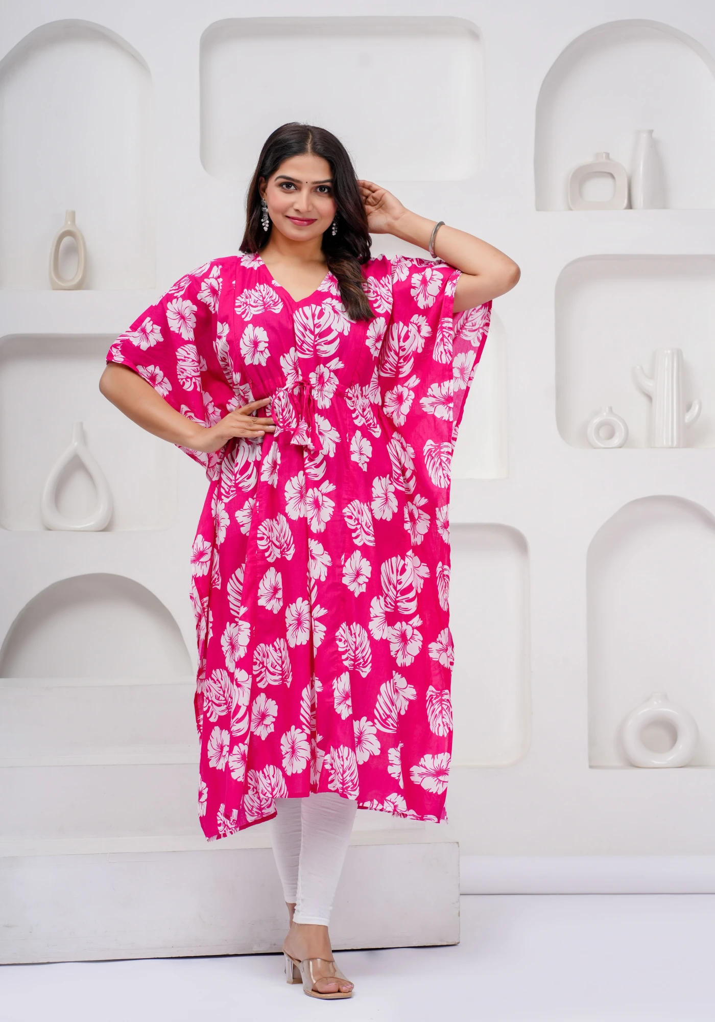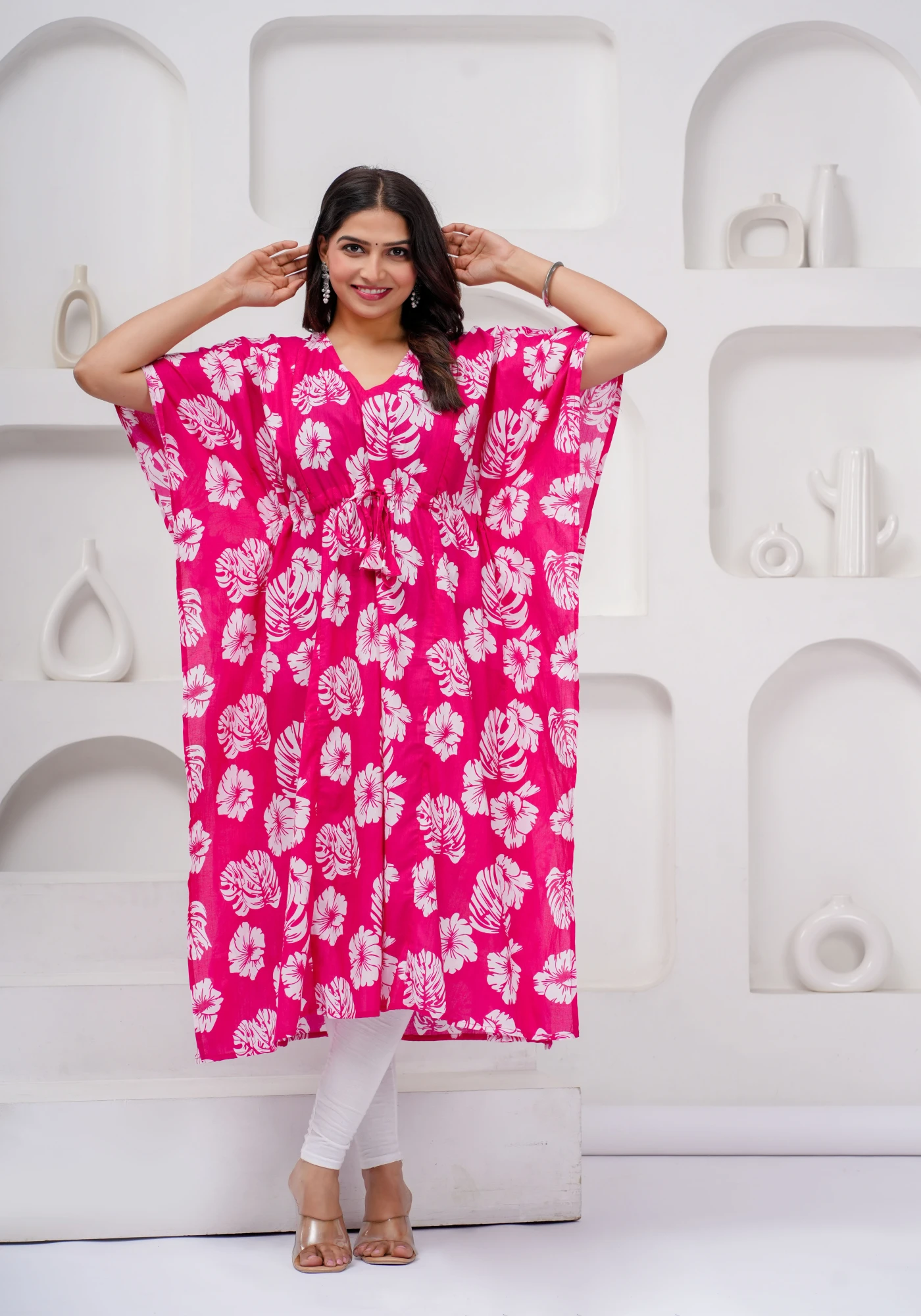 The Cotton Floral Printed Maternity Kaftan is a soft and airy maternity night dress designed to provide comfort throughout pregnancy and after delivery. Made from breathable cotton fabric, this lightweight outfit keeps you relaxed during long days and restful nights.