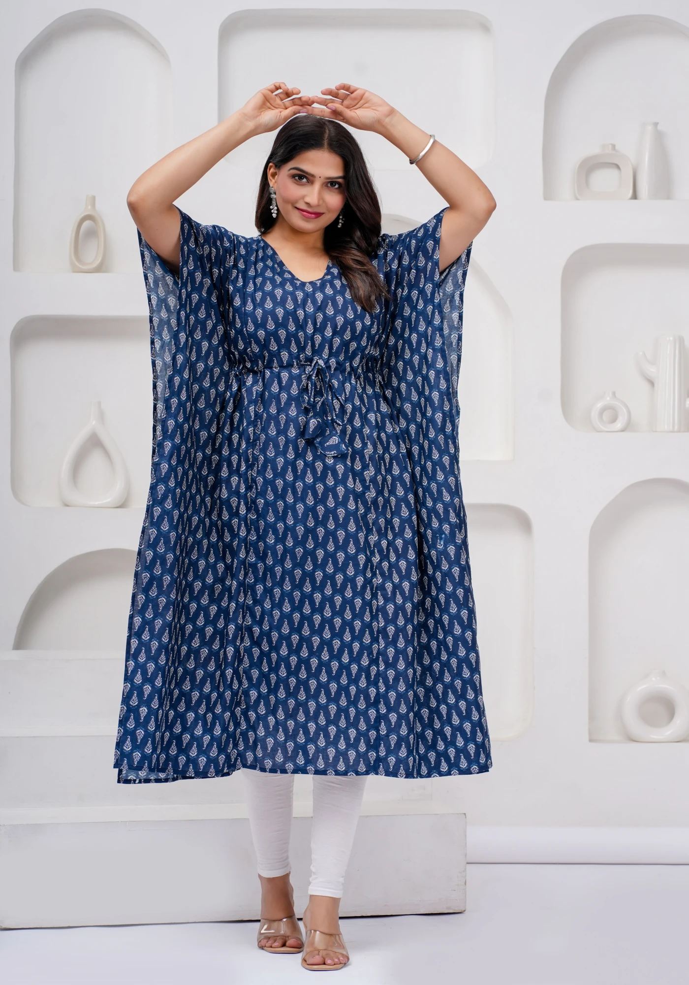 Functional yet stylish, this maternity lounge kaftan is a reliable addition to your wardrobe, offering comfort during pregnancy and ease during postpartum recovery.