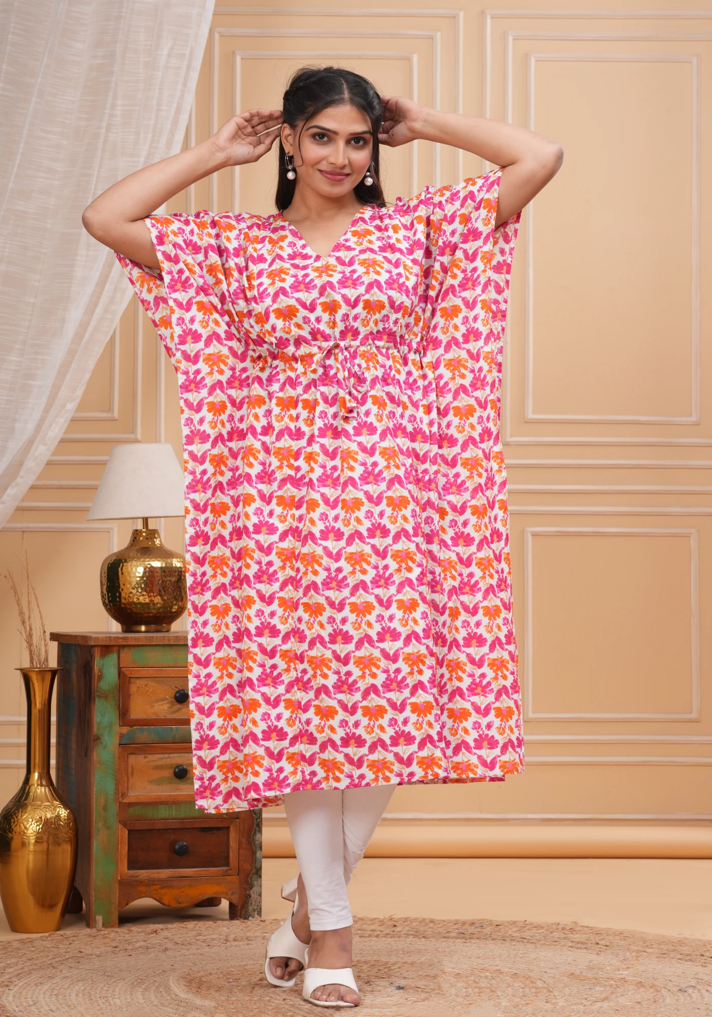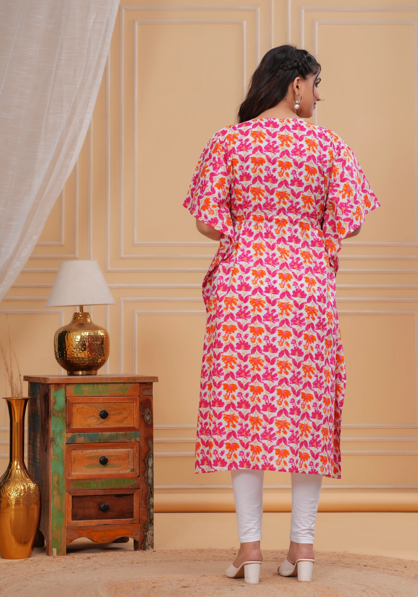 Embrace comfort and elegance with this floral maternity kaftan, specially crafted for pregnancy and nursing moms. Made from lightweight breathable cotton, this maternity dress keeps you cool, relaxed, and comfortable throughout the day.