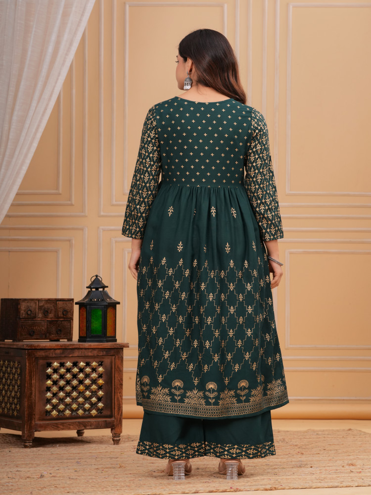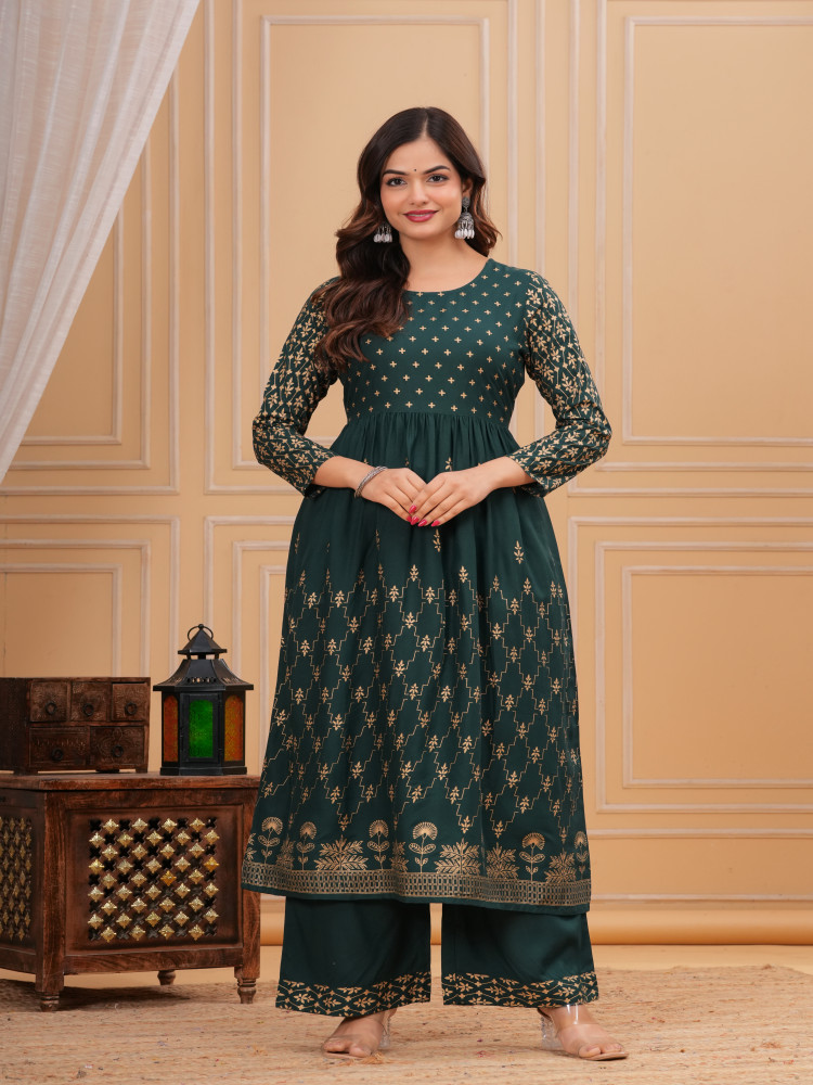 Enhance your ethnic wardrobe with this elegant Womenβs Gold Printed Kurta Set. Designed with a beautifully gathered rayon kurta, ankle-length palazzo, and a soft printed voile dupatta, this outfit perfectly balances traditional charm and modern style. Ideal for festive occasions, family gatherings, weddings, and formal parties, this kurta set is crafted to give you a graceful and striking look.