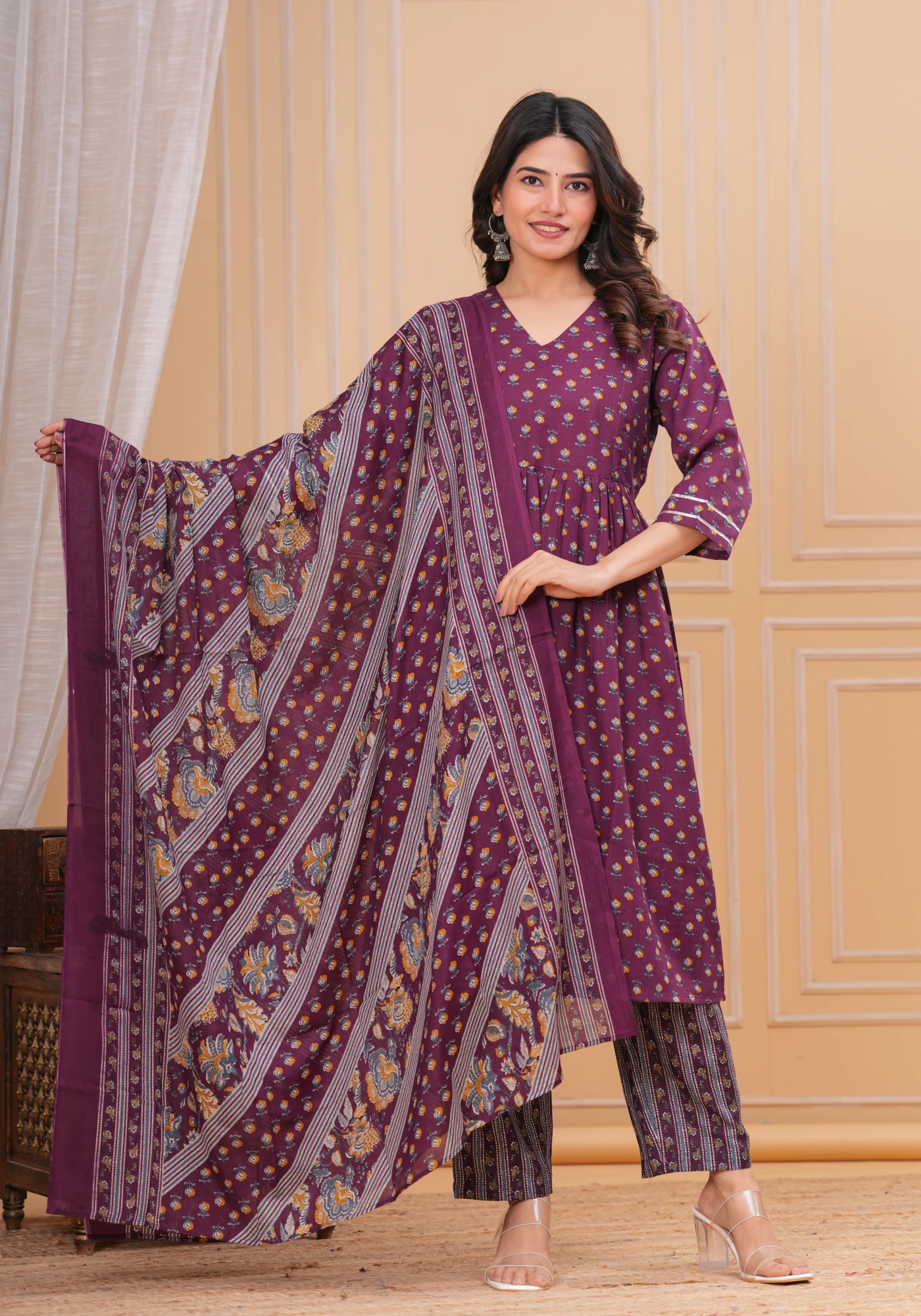 This Floral Printed Maternity Kurta, Pant and Dupatta Set Crafted from Cotton Blend fabric, providing optimal comfort throughout the day. Featuring both side concealed zips on the yoke, this set offers convenience and ease during maternity and nursing periods, allowing for effortless feeding access. The kurta is thoughtfully designed to accommodate the changing body shape, ensuring a flattering fit at every stage of pregnancy. Meanwhile, the drawstring waistband and one pocket on the pant provides adjustability and support.