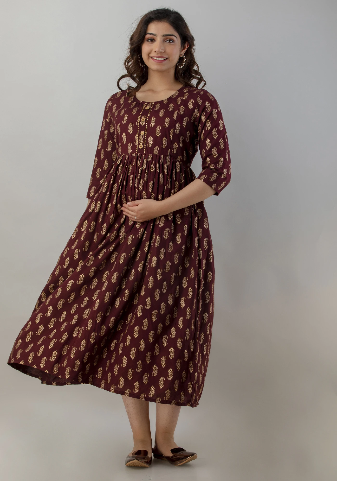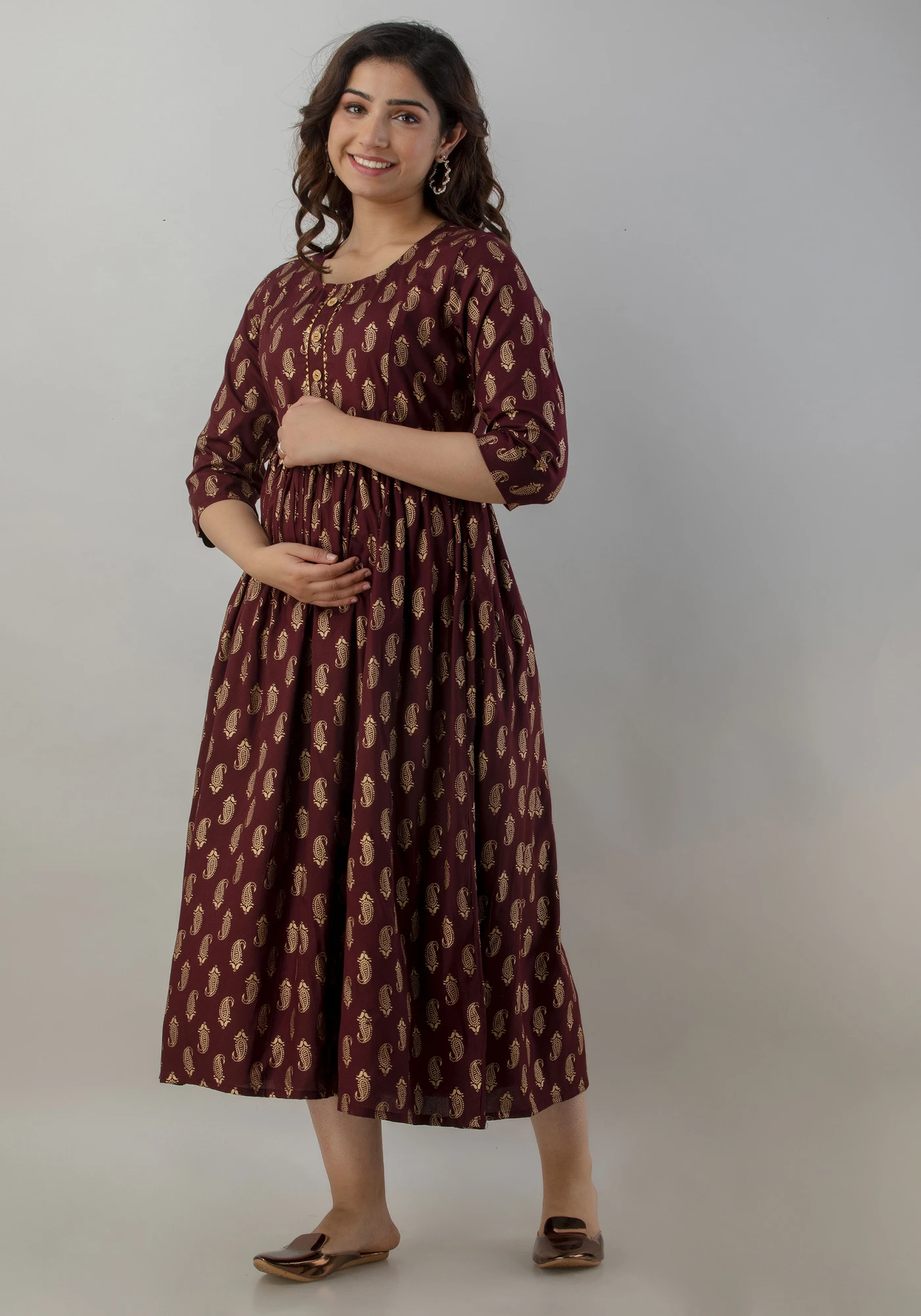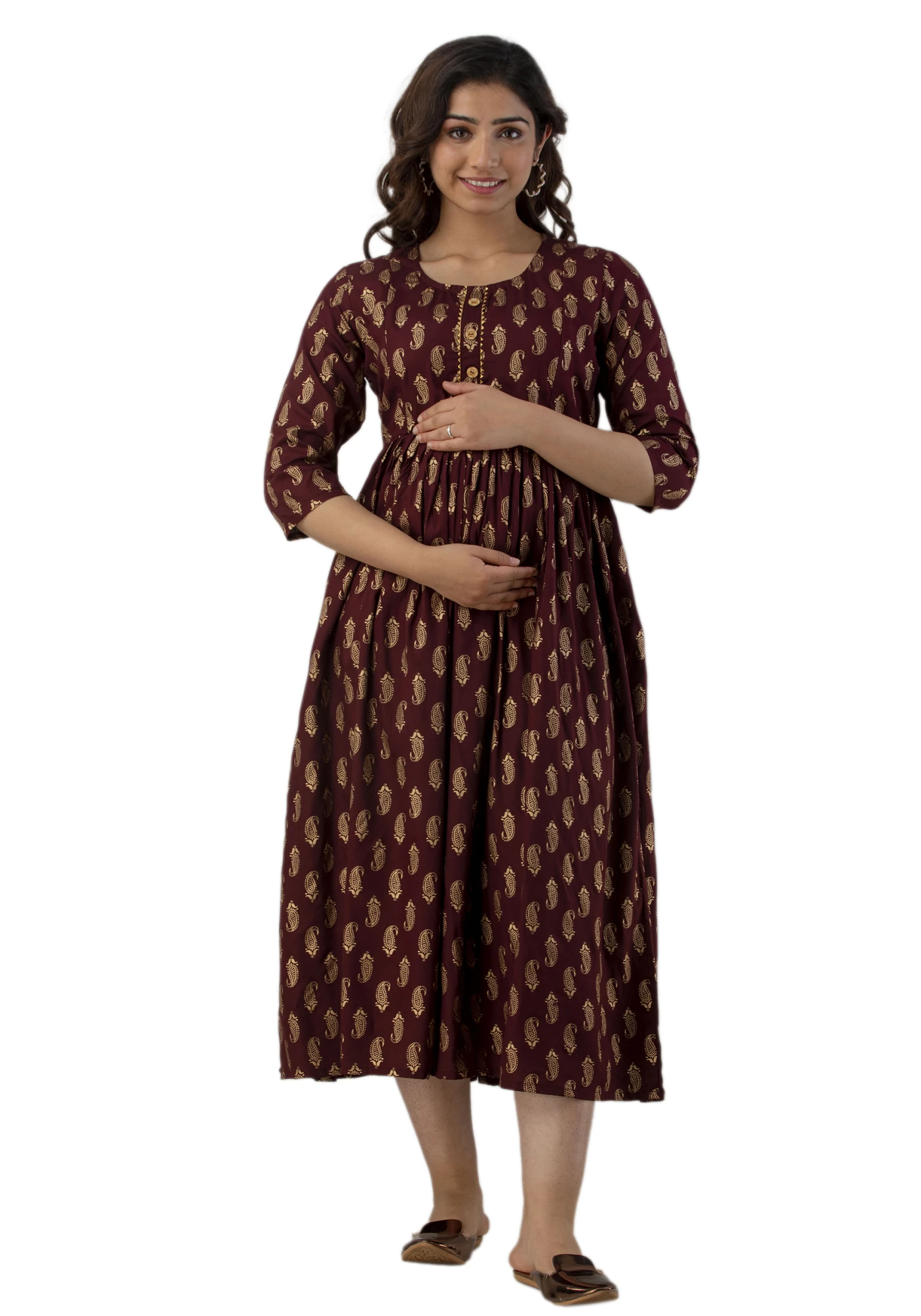 Printed Flared Maternity & Nursing Gown Dress – Celebravo