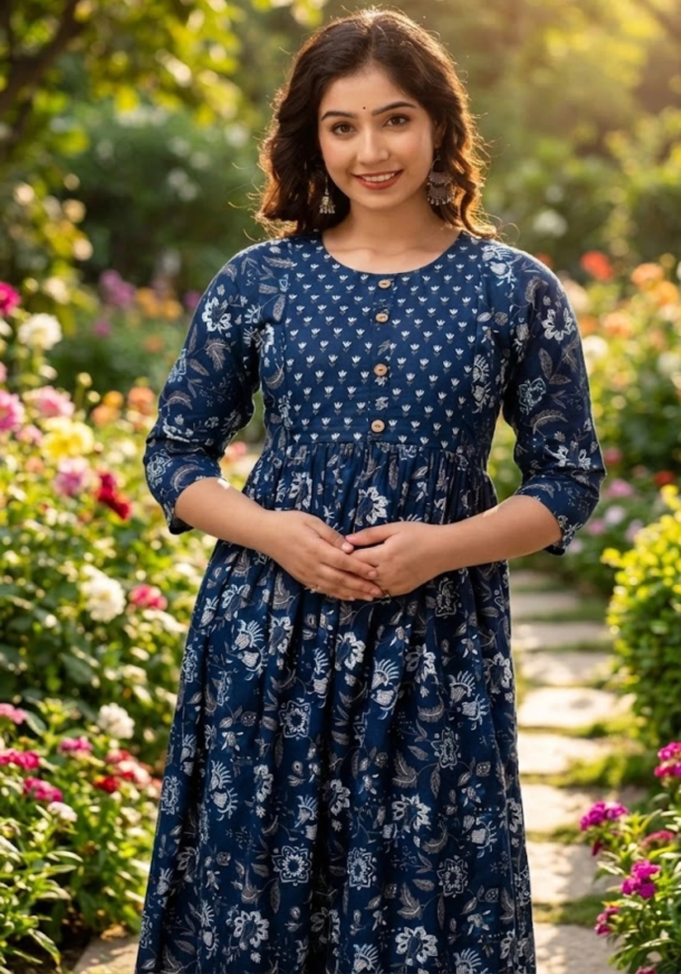 Stay stylish and comfortable throughout pregnancy and beyond with this floral printed maternity and feeding kurta dress. Crafted from soft, breathable cotton fabric, this maternity outfit ensures all-day ease while keeping you cool and relaxed.