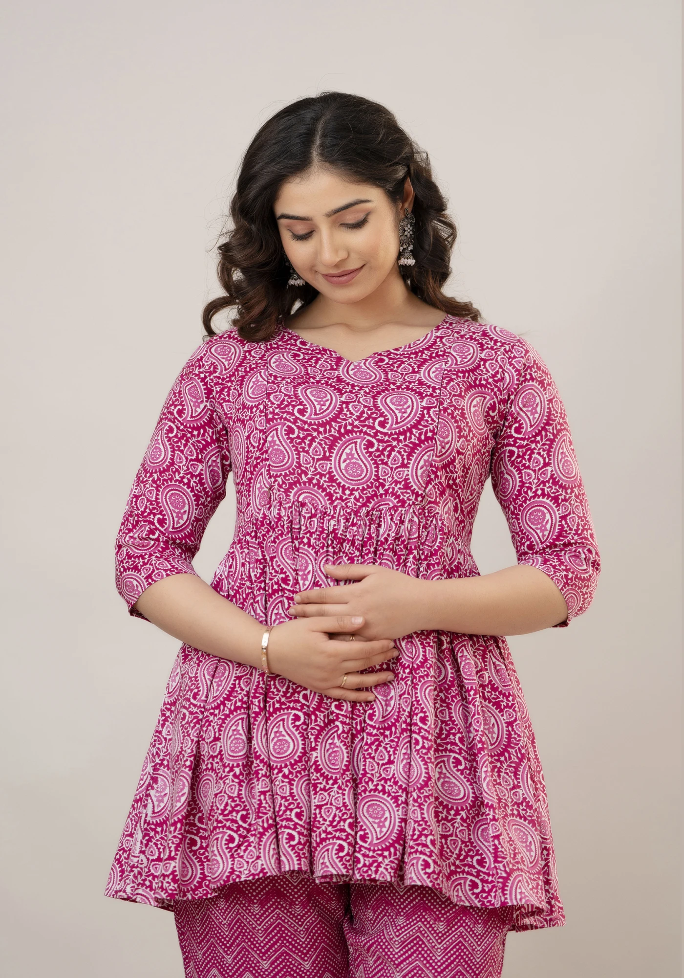 Made for comfort without compromising on style, this feeding wear set is ideal for casual outings, hospital visits, travel, or relaxing at home. The elegant paisley print adds a touch of charm, making it a must-have pregnancy wear essential in your maternity wardrobe.