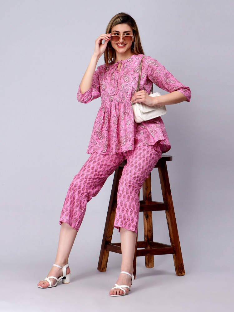 This Stunning Floral Printed Co-Ord set by Celebravo comes in 100% Cotton in Fabric with V Neckline and 3/4 Regular Sleeves and both side pockets in Pant. This Co-Ord set is very fashionable and trendy and available in all S to 6XL Sizes. This look is perfect for your college, all day wear, Office and for your get together function.