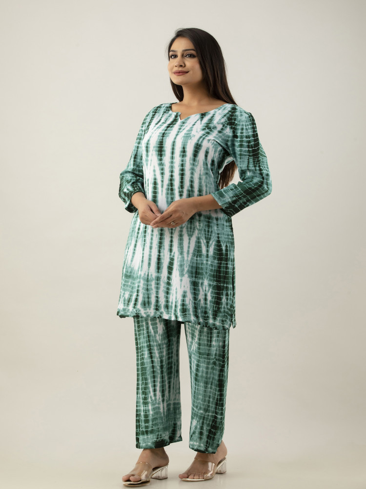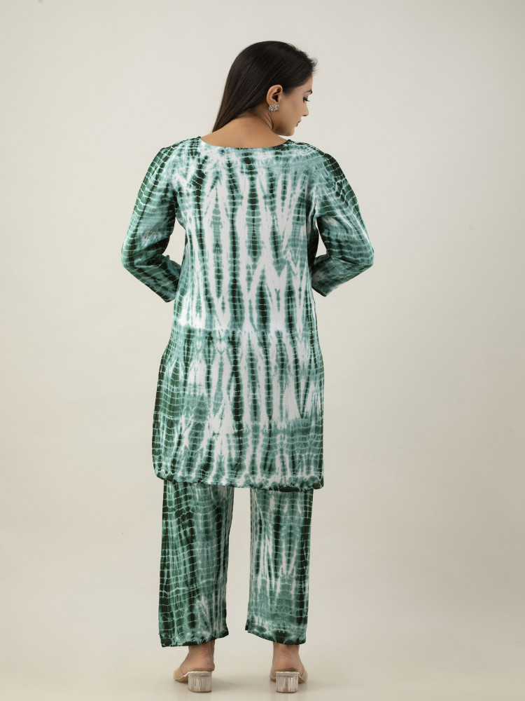 This trendy Tie-Dye Kurta and Pant Cord Set is made from soft rayon fabric for all-day comfort. The knee-length kurta features a stylish tie-dye pattern, adding a chic touch to your casual wear. The matching pants come with an easy fit and practical pockets on both sides. Perfect for relaxed outings or casual gatherings, this set blends fashion with comfort effortlessly. Elevate your wardrobe with this modern yet traditional ensemble.