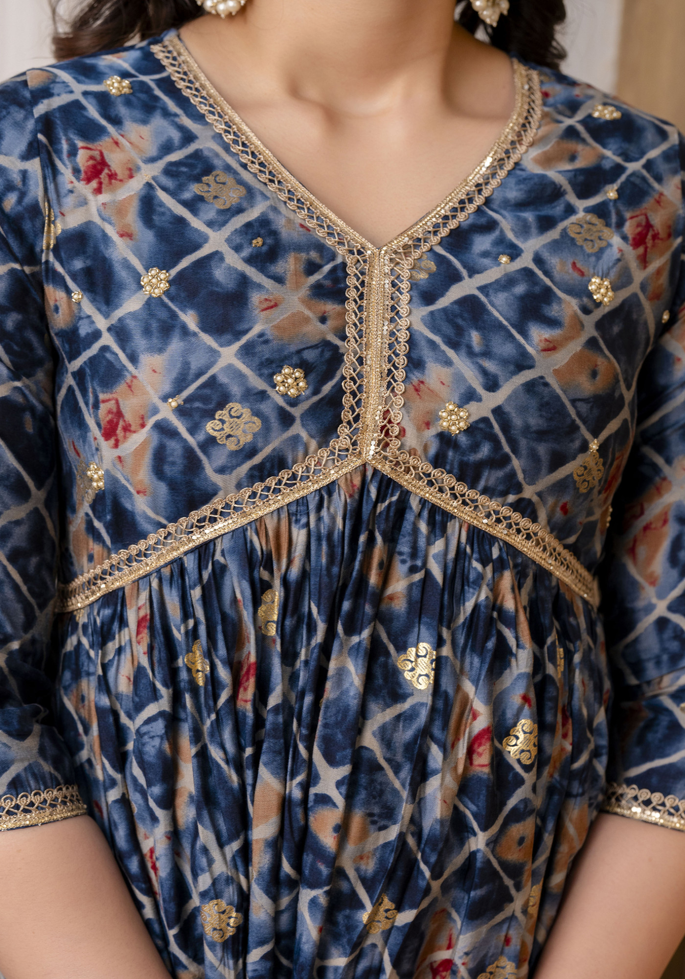 How to Style - Style this with statement chandbali earrings, embellished mojari, and a sleek clutch for the perfect look. opt for soft curls or a low bun with dewy makeup to enhance its elegance.