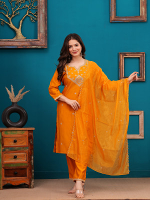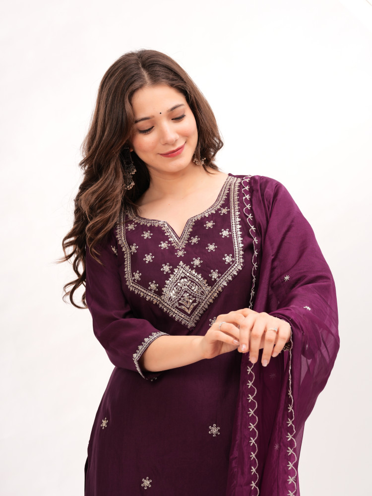 Where to Wear : This stylish kurta ensemble is great for festivals, family get together as well as weddings and formal events like parties! With its embroidery and exquisite dupatta design; it's a perfect choice, for special gatherings where you aim to leave a lasting impact.