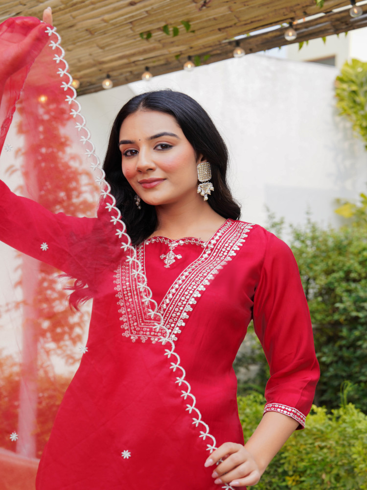 Where to Wear : This stylish kurta ensemble is great for festivals, family get together as well as weddings and formal events like parties! With its embroidery and exquisite dupatta design; it's a perfect choice, for special gatherings where you aim to leave a lasting impact.