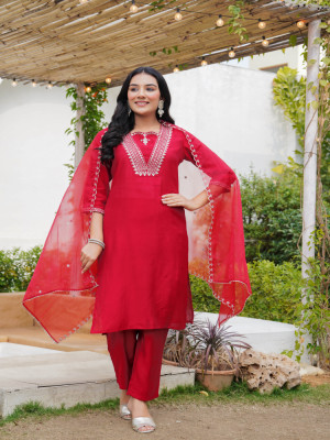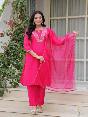 Where to Wear : This stylish kurta ensemble is great for festivals, family get together as well as weddings and formal events like parties! With its embroidery and exquisite dupatta design; it's a perfect choice, for special gatherings where you aim to leave a lasting impact.