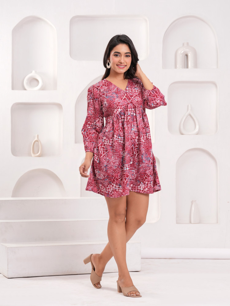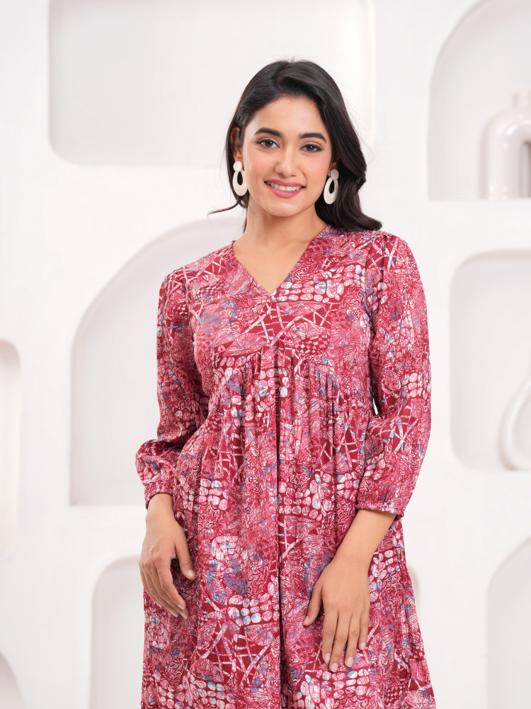 Stay classy and stylish with this Women's Pretty Floral Printed Fit and Flare Partywear one piece Dress. Featuring an attractive design, this partywear dress is designed above the knee with V Neckline and full length elasticated sleeves, giving you a beautiful fit and flare Look.