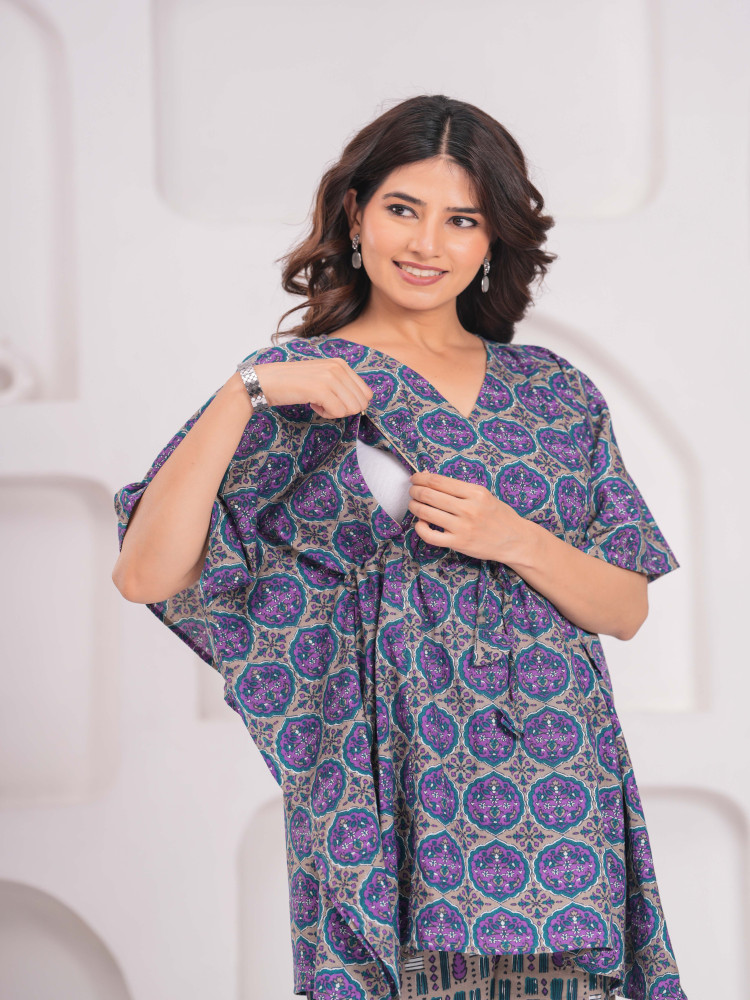 Purple Floral Feeding Kaftan set