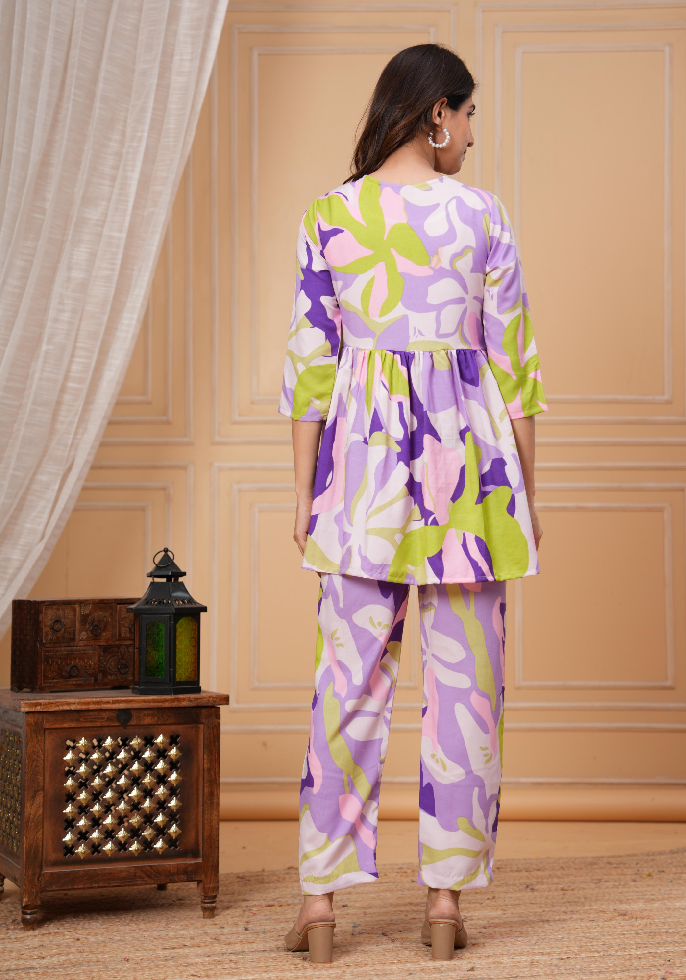This Purple Abstract Print Maternity & Feeding Co-ord Set Crafted from high-quality Poly Rayon fabric, providing optimal comfort throughout the day. Featuring both side concealed zips on the yoke, this set offers convenience and ease during maternity and nursing periods, allowing for effortless feeding access. The top is thoughtfully designed to accommodate the changing body shape, ensuring a flattering fit at every stage of pregnancy. Meanwhile, the drawstring waistband and one pocket on the pant provides adjustability and support.