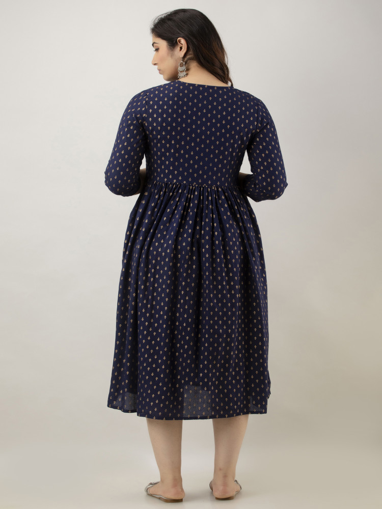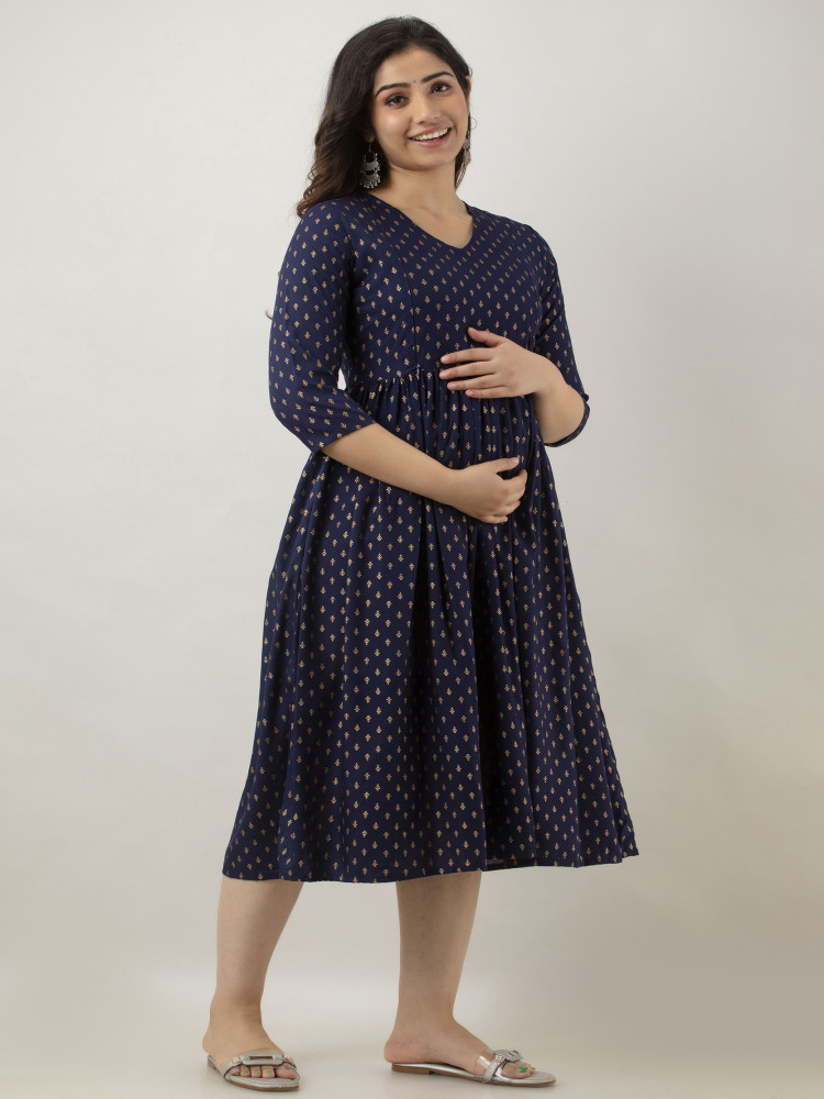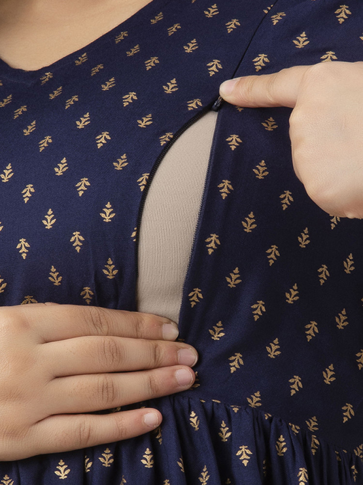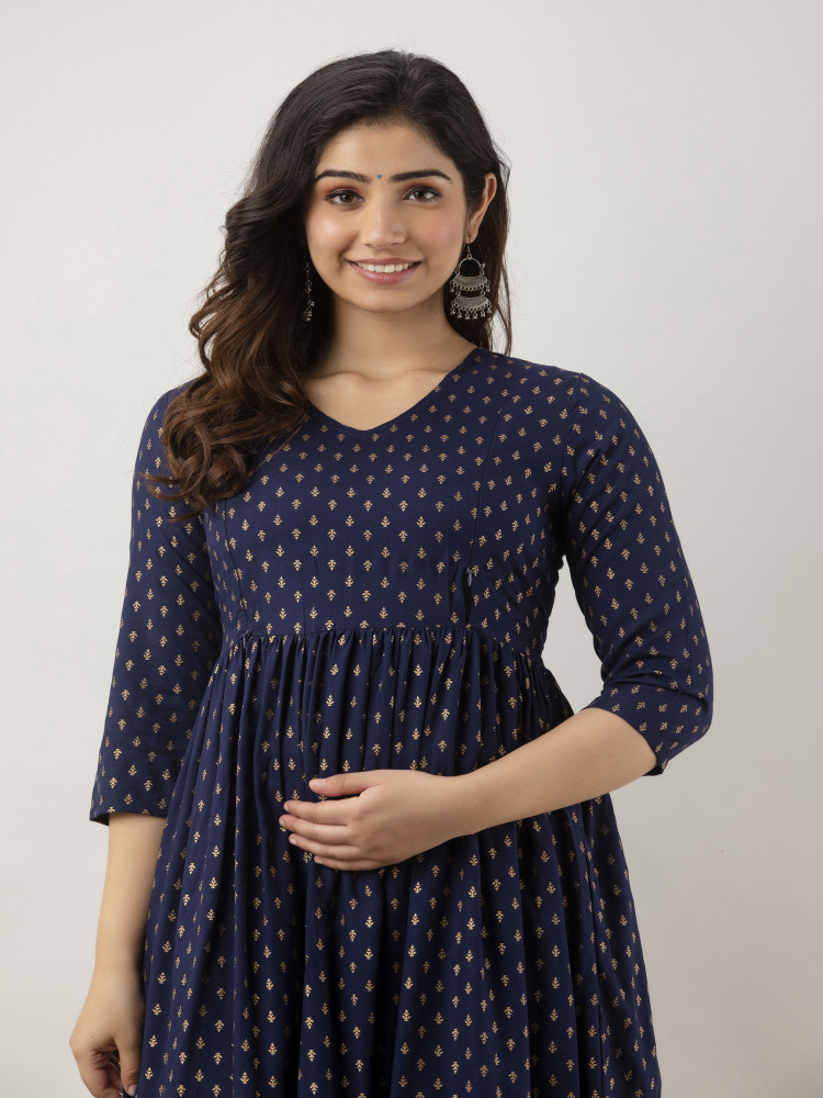 Foil Printed Flared Maternity & Nursing Kurta Dress