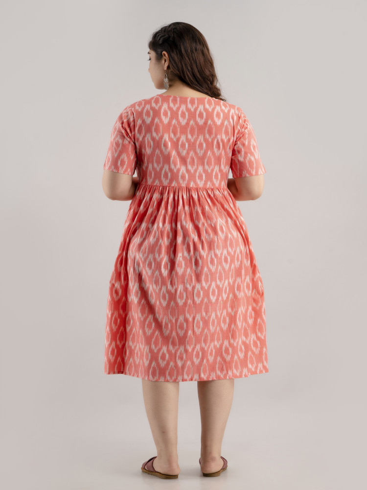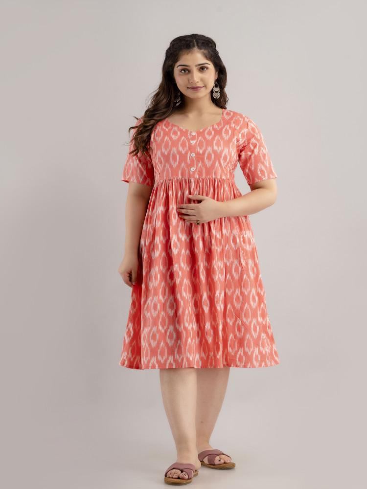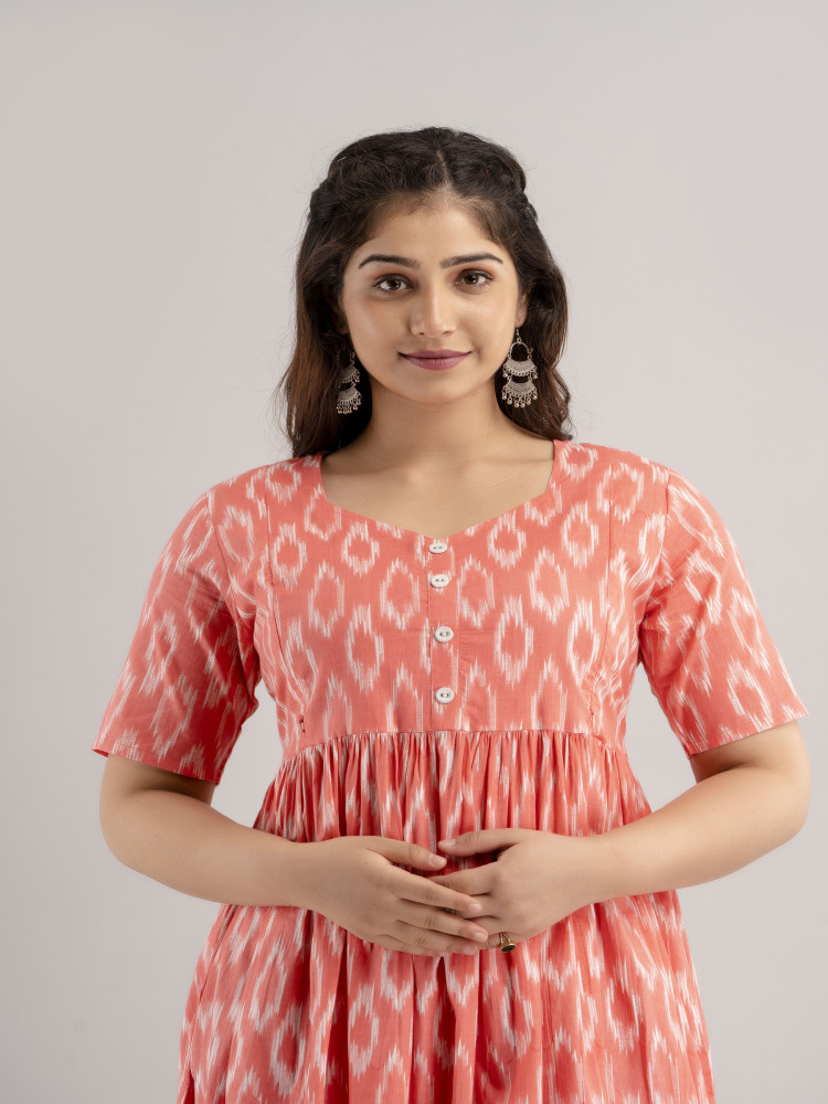 Ikat Printed Cotton Flared Maternity & Nursing Kurta Dress