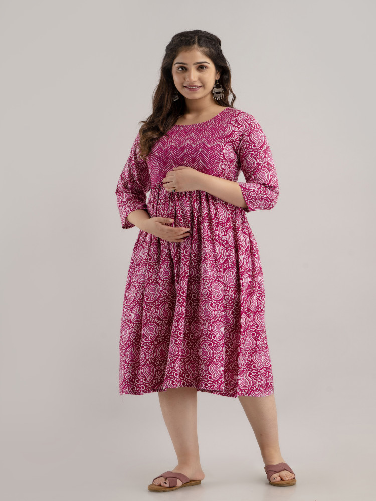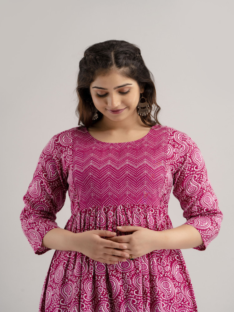 Add timeless elegance to your maternity collection with this paisley printed maternity and feeding kurta dress, designed for comfort and effortless style. Crafted from soft and breathable rayon fabric, this maternity outfit keeps you relaxed throughout pregnancy and postpartum.