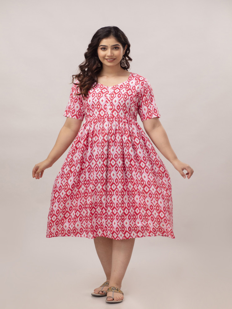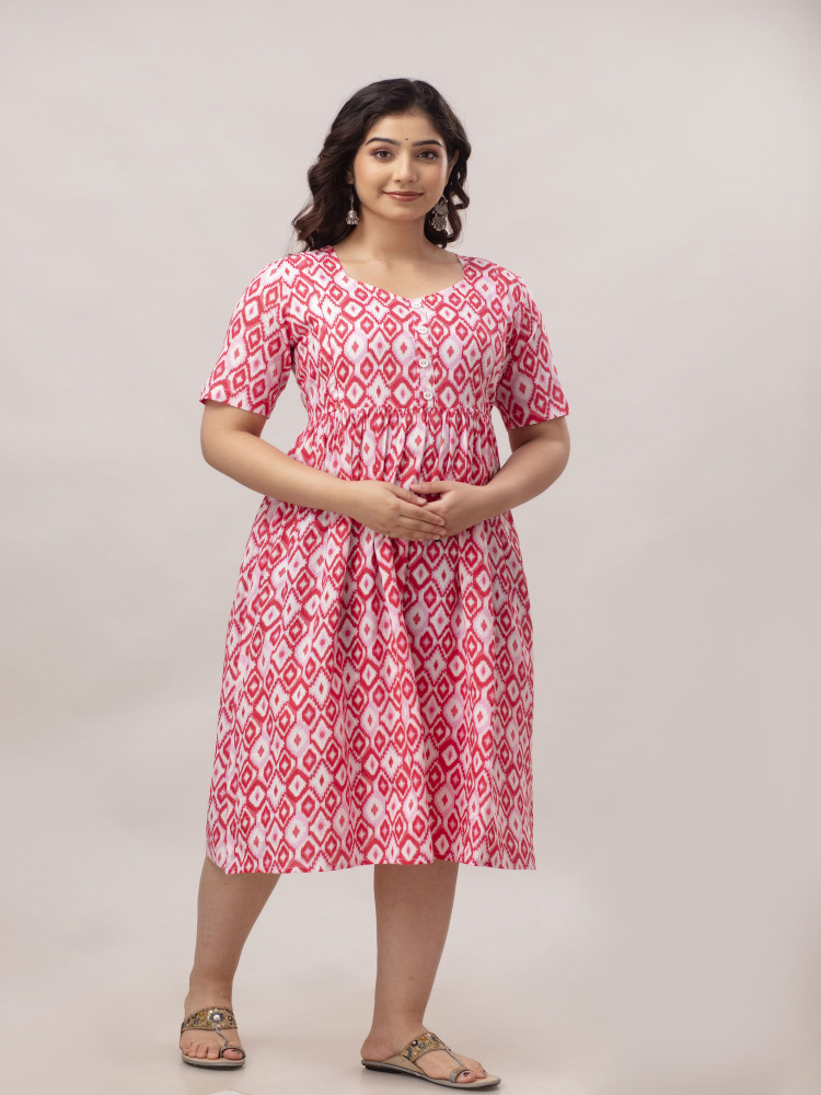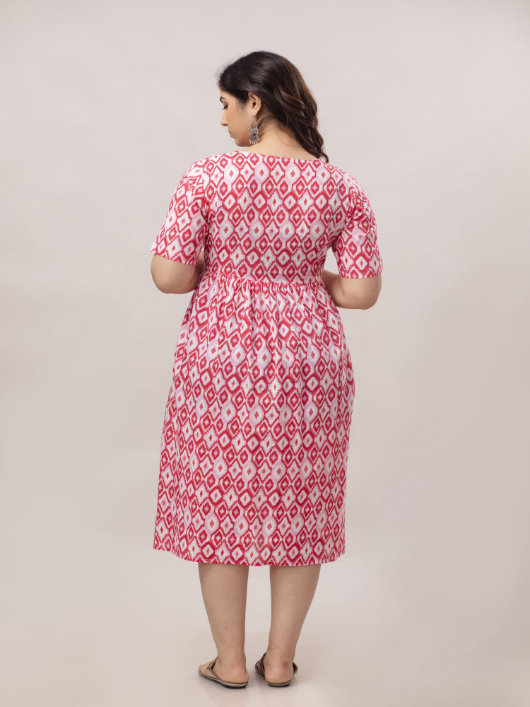 Ikat Printed Cotton Flared Maternity & Nursing Kurta Dress