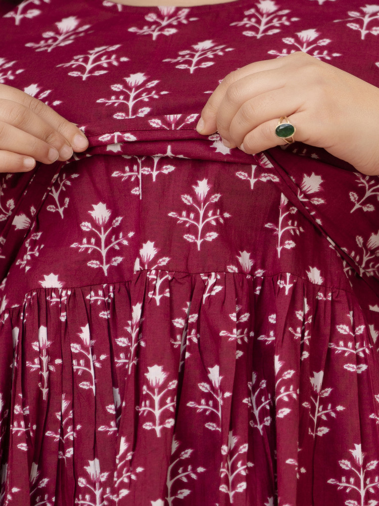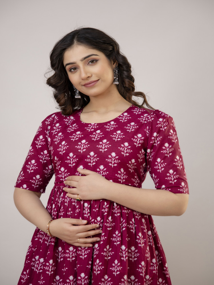 Embrace comfort and style with our zipless floral printed maternity and feeding kurta. Crafted from pure cotton, it offers breathability and softness for both you and your baby. Effortlessly transition from maternity to nursing with its thoughtful design. Dori in back give you perfect shape and can be adjust according to your waist. Because of its zipless design, can be worn in both pregnancy and non pregnancy time.