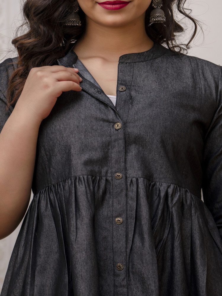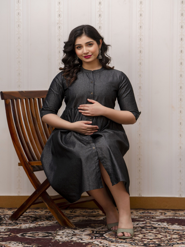 Embrace comfort and style with our Denim fit and flared maternity and feeding kurta. Crafted from cotton blend, it offers breathability and softness for both you and your baby. Effortlessly transition from maternity to nursing with its thoughtful design. Its Openable Button Design make you wear it post-delivery as nursing dresses or just regular women's dress.