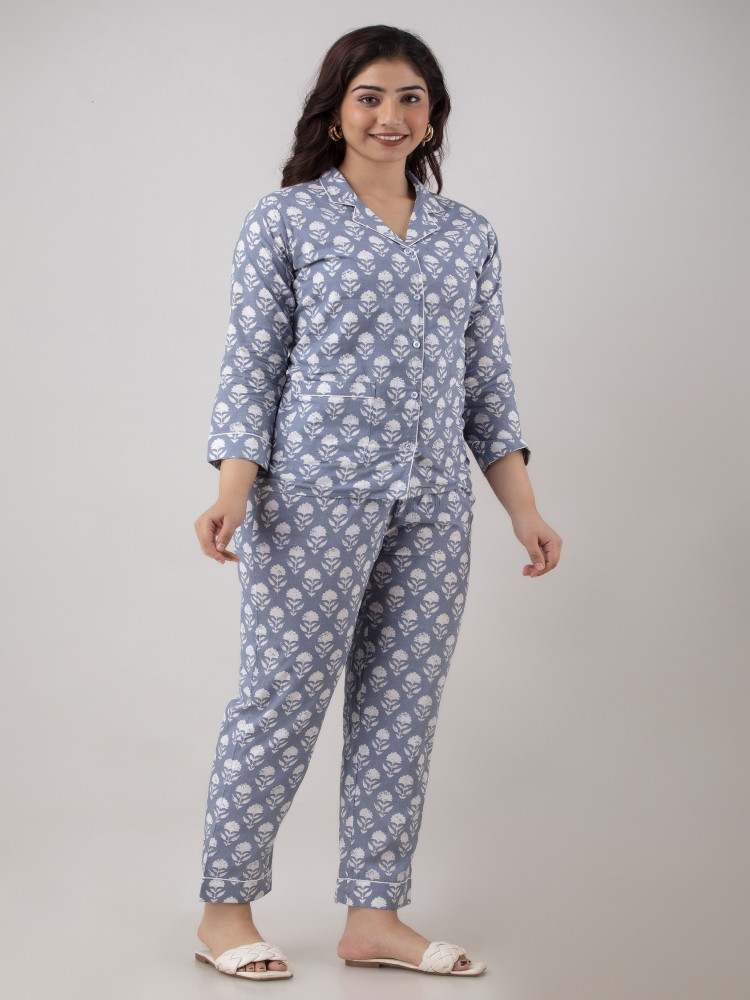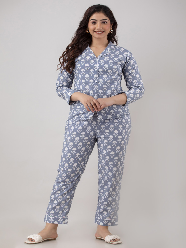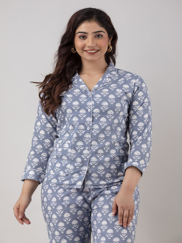 This stylish Floral Print Top and Pant Night suit will keep you cool and comfortable with its pure cotton fabric with one pocket in front and Club neckline. Crafted with a relaxed fit, this Pant set will ensure plenty of comfort during sleep. The patch pocket detail lends a unique touch to this night suit.
