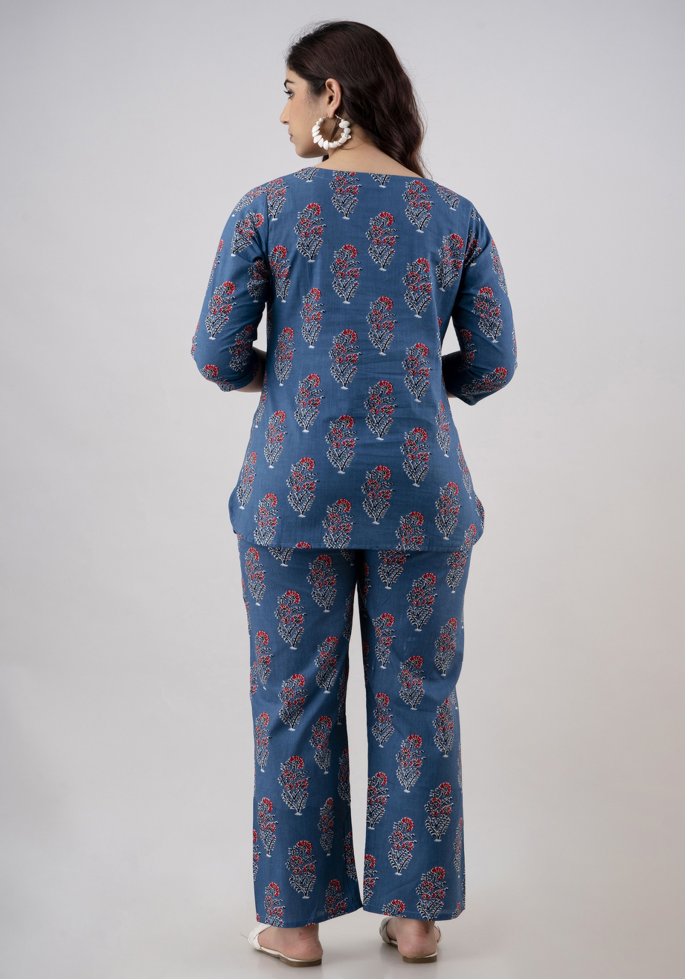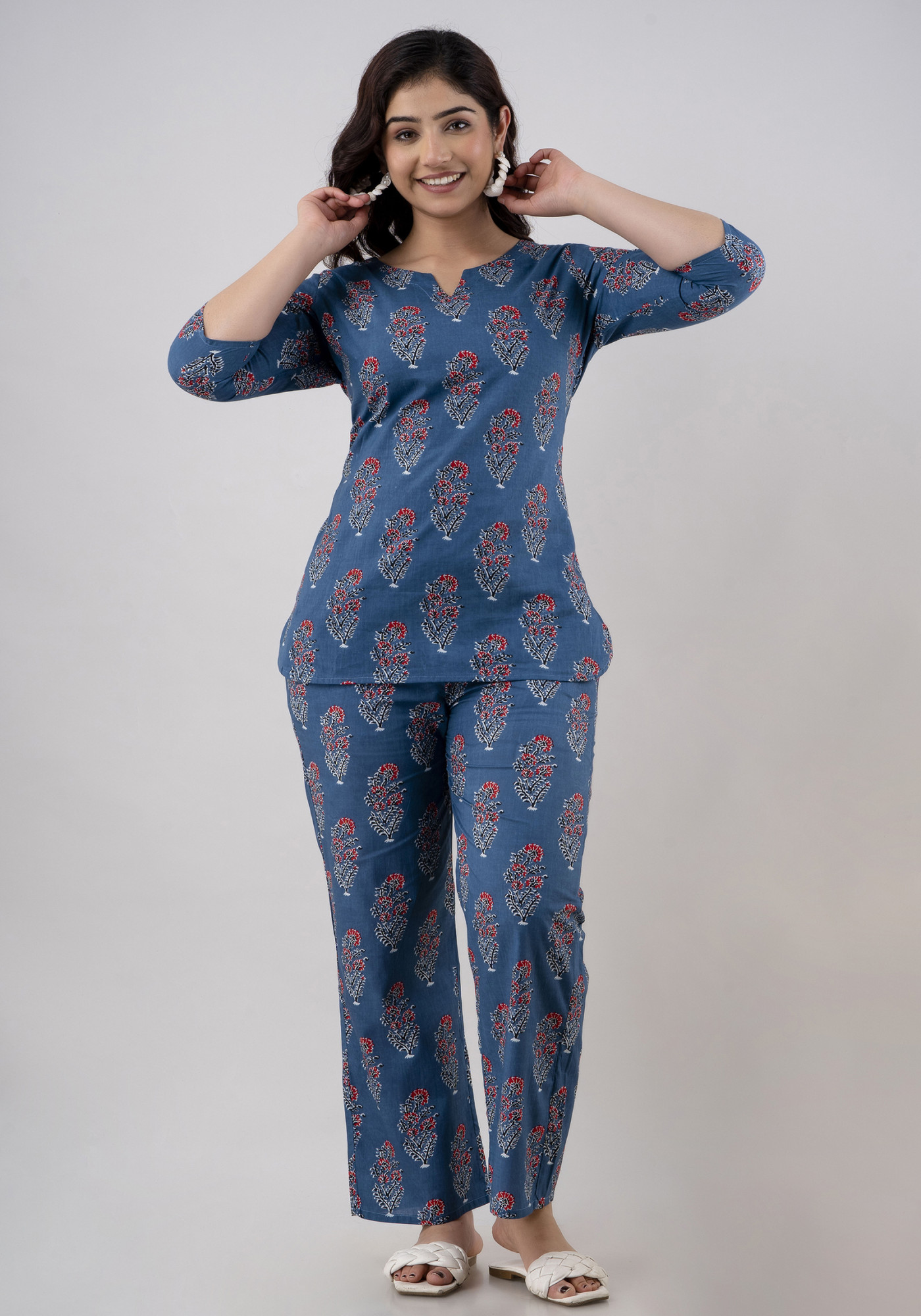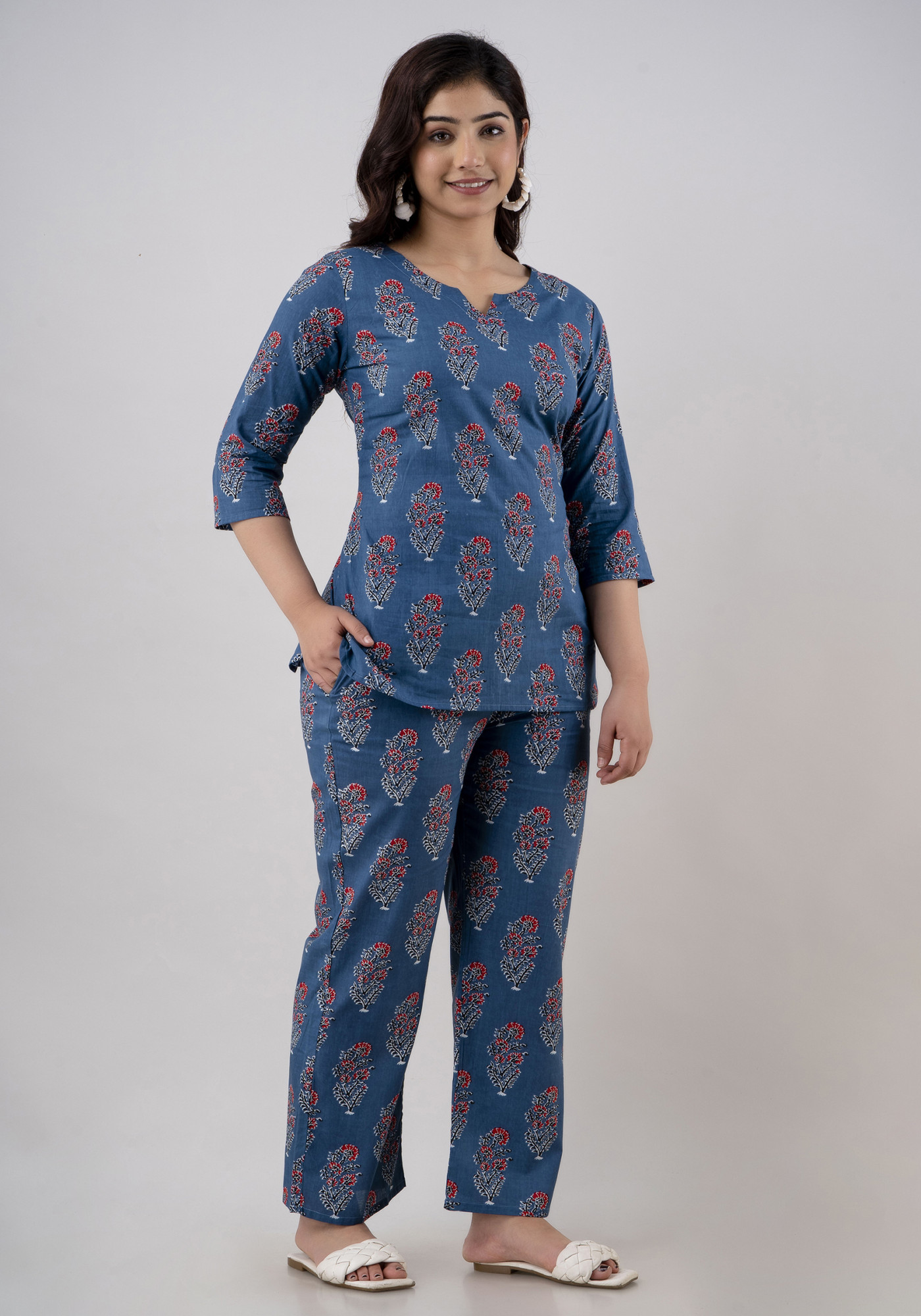 This Stunning Floral Printed Night suit set by Celebravo comes in 100% Cotton in Fabric with Sweetheart Neck and 3/4 Regular Sleeves and both side pockets in Pant. This Night suit set is very fashionable and trendy and available in all S to 6XL Sizes. Made from breathable pure cotton, it ensures all-night comfort while keeping you cool.
